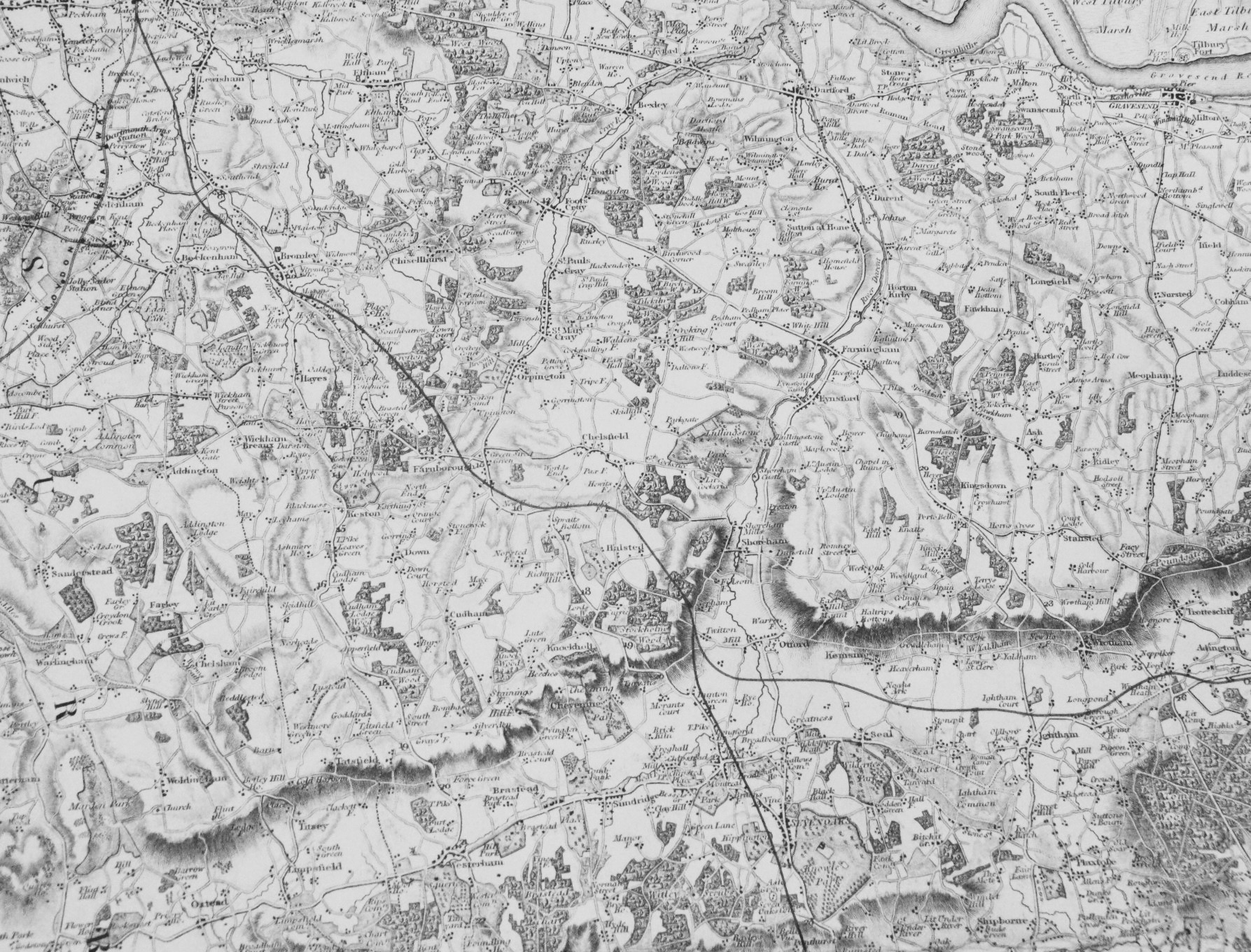 From New Cross the LB&SCR line would branch to the east and head through Beckenham and Farnborough to descend the Downs to the valley below at about the same place where today's main line emerges. No tunnel is shown on the map but surely one would have been required.