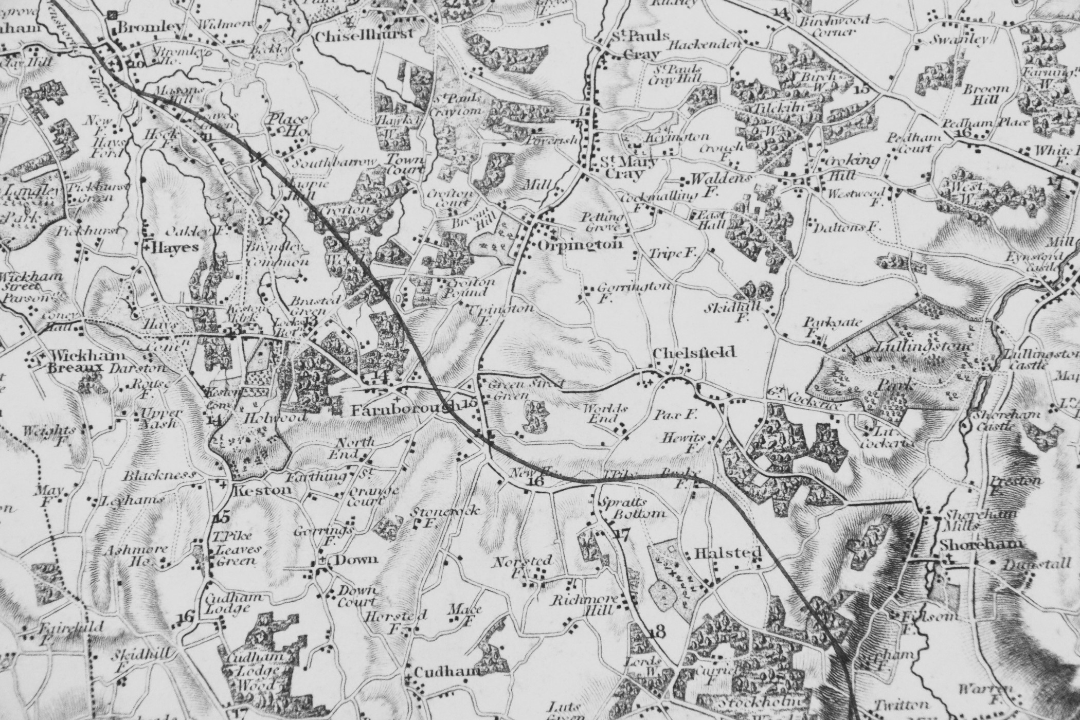 The maps below show the route through Green Street Green and Pratts Bottom. Note the diversion of the main Turnpike Road at Pratts Bottom.