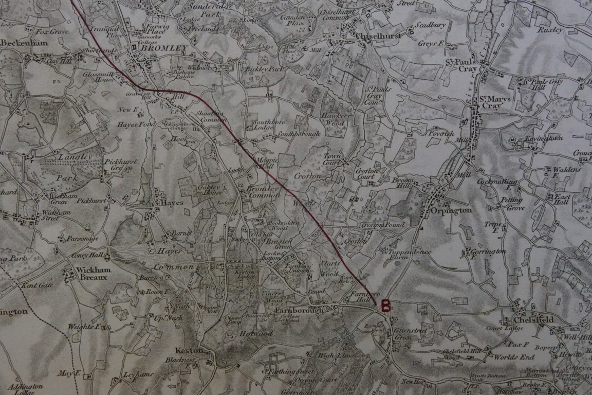 The proposal of 1852 had at its start the newly built railway from London to Dartford via Lewisham. The line would branch off at Lewisham and then head south passing to the east of Beckenham, through Bromley at about the location of the future station at Bromley South, and then head parallel to the main turnpike road but somewhat east of it.