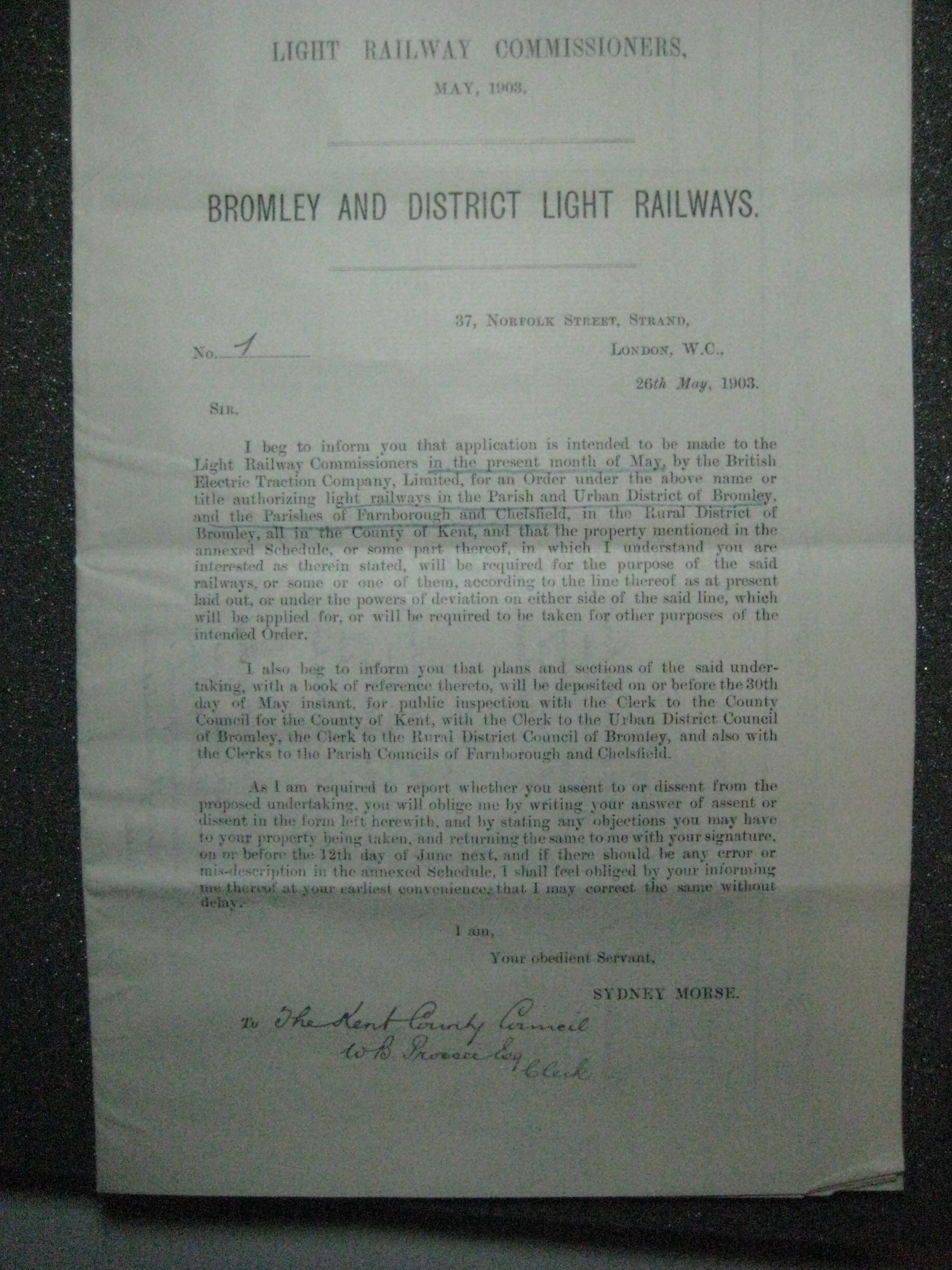 BROMLEY AND DISTRICT LIGHT RAILWAY - 1905