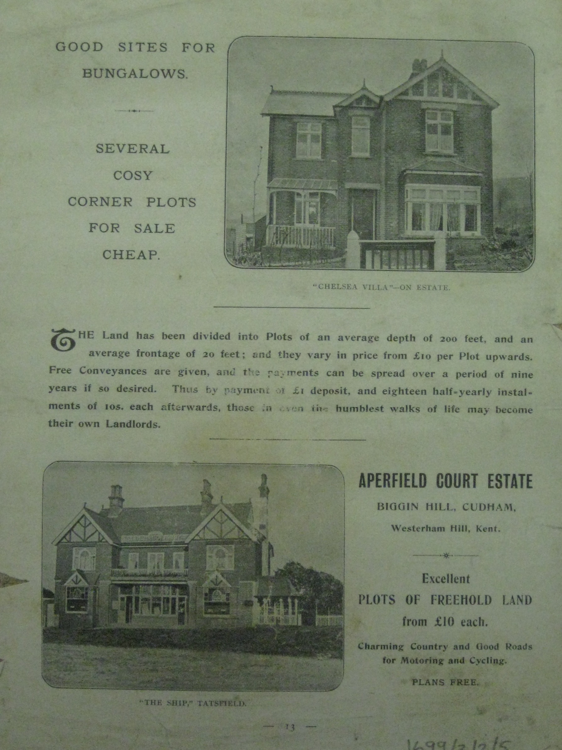 Biggin Hill’s major drawback has always been its poor transport links: one road in and one road out. Set on the top of the North Downs it was never going to be a candidate for a main line railway. It was this remoteness, resulting in low land prices, that enabled developer Frederick Dougal to offer plots of land for new housing very cheaply, see the illustration below for an example.. Even so he realised that Biggin Hill would benefit greatly from a railway, and supported plans developed in 1898 for the Tatsfield Light Railway. The plans were drawn up and promoted by Colonel Holeman Stephens, who built, or was involved with, many railway schemes throughout the country.