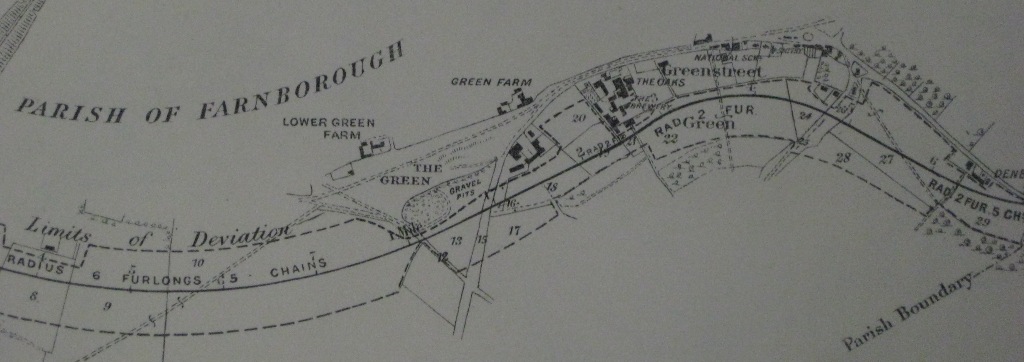 The plan was discussed by Farnborough Parish Council on 6th January 1889, and after much debate a resolution was carried to the effect that the Council objected to the scheme on account of a dangerous level crossing proposed to be made at Green Street Green. Various alternatives were discussed, including putting the railway in a cutting with a bridge, and changing the route to avoid the problem. Eventually the objection was withdrawn.