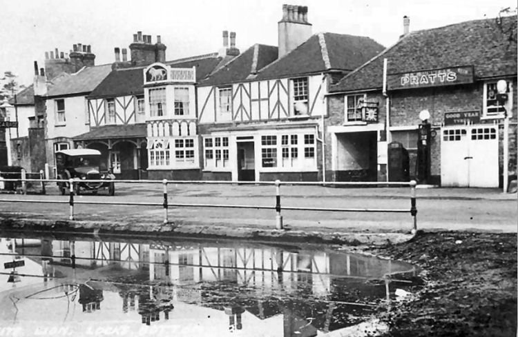 The 'White (Whyte) Lion' in Locks Bottom is another old established Inn, with a date of 1626 claimed. The stables at the rear were unfortunately, demolished by mistake, when the new supermarket, that is now Sainsbury's was built. The Woodman' dates from at least 1823, probably only as an 'ale house' not being named until about 1869, although again, the present building is not the original.