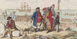 Not all the traffic using the road from the coast through Farnborough was legal. With the Kent and Sussex coast the close to France, smuggling goods up to their market in London was rife. Smuggling goods across the English Channel to avoid trade restrictions or import duties has been commonplace for centuries. The smuggling of wool and even live sheep out of England known as 'owling' had by about 1720 been replaced by the importing of tea, spirits, tobacco and luxury items such as lace. The depressed state of the economy in Kent and Sussex at this time meant that farm laborers could earn more for one night's 'work' than a whole week of legitimate hard labour with long hours. Smuggling therefore enjoyed wide popular support from most residents near the coast who saw in this also a way to counter the dominance of the ruling classes which were often corrupt, whilst circumventing unpopular taxation.Despite the popular conception that smuggling gangs were cruel and merciless, this was not always the case. Many were so large that they overwhelmed the government's preventative agents who were employed to stop the smuggling. These agents either chose to 'turn a blind eye' (for which they were often rewarded in gratuities) or were simply powerless to intervene. Many who did try to arrest the smugglers were simply relieved of their weapons, and possibly even tied-up, whilst the smugglers continued with their offloading or transportation, often in broad daylight. The smugglers were secure in the knowledge that they could not be identified and no witnesses would testify against them in court. The situation however became more vicious and ruthless as the Government introduced increasing measures against the smugglers. The penalties increased from imprisonment in 1736 to transportation to the colonies, and after 1746 the death penalty. The 1736 Smuggling Act which enabled a convicted smuggler to be granted a free pardon if they identified and testified against their colleagues, caused smugglers to be suspicious of everyone, and to terrorise anyone who might betray them.