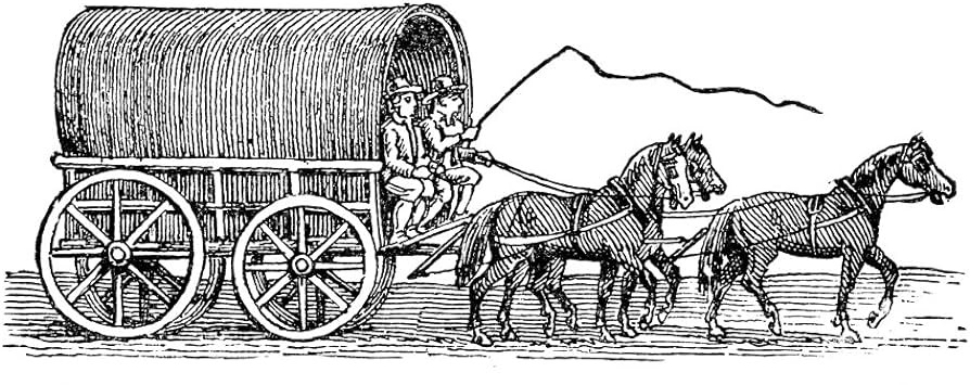 From the early 1500s 'stage wagons', resembling the 'prairie schooners' of the American West of the 1800s, were travelling the roads of Britain. Up to 30 passengers, or a mix of passengers and goods, were carried in these large four wheeled wagons travelling at between 10 and 15 miles a day, drawn by teams of horses or oxen.