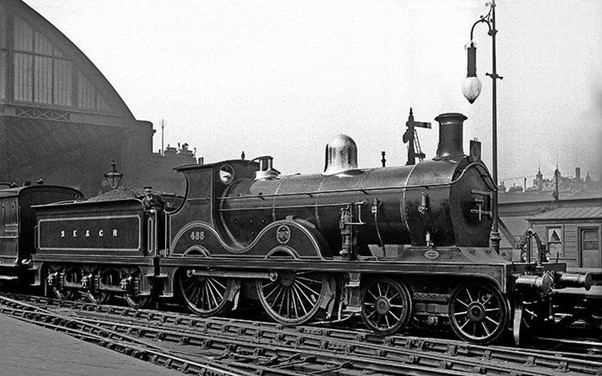 The two photos at the top of all pages show: an early photograph of the platforms at Orpington station, the nearest to Farnborough, and the viaduct on the main line approaching London Bridge soon after opening. The two further photos above show later locomotives of types that would have worked trains in the Kent area.