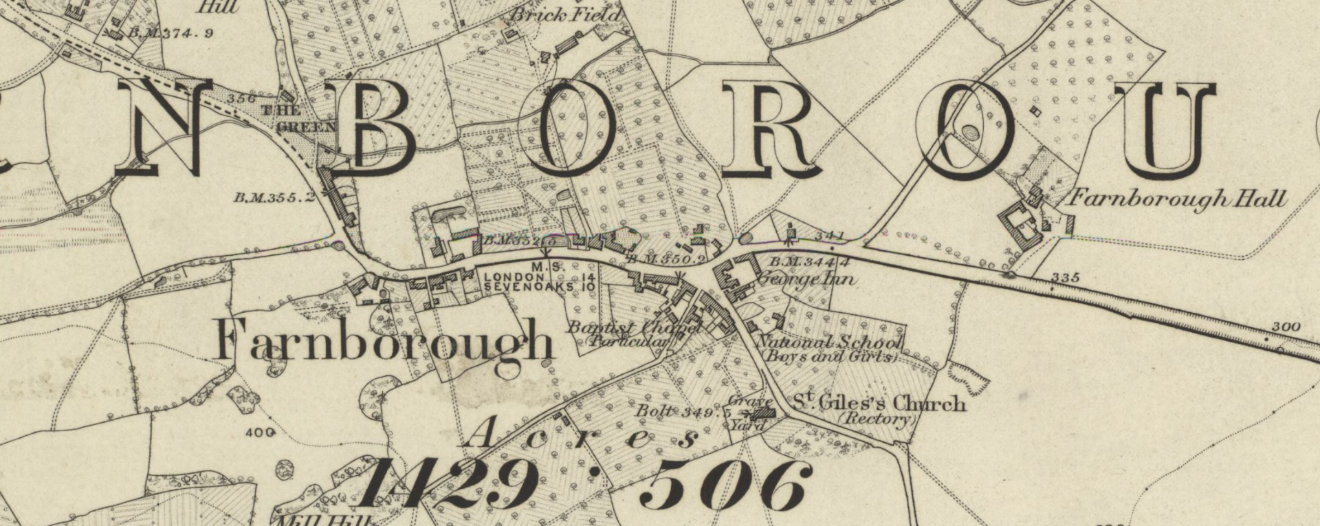 Farnborough remained a sparsely populated place, as is shown by this map dating from 1870.