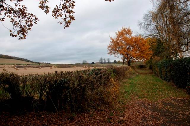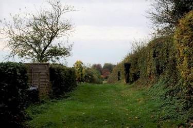 Continuing straight across the roundabout, the road heads toward Chevening, parallel with the M25. After a short while it bends to the left. The old entrance starts alongside the cottages shown in the photo above. It extends for about on mile and emerges behind the churchyard of St. Botulph's church in Chevening.