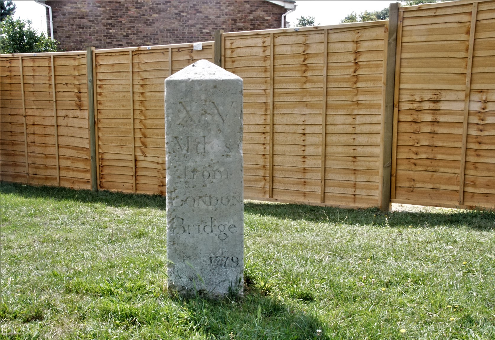 of Dalton Close and Tubbenden Lane.Milestone. Dated 1779. Limestone. Square plan.